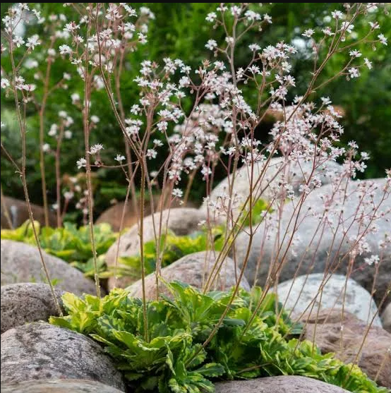Камнеломка образует плотный раскидистый ковер из множества розеток. Листья толстые, кожистые, собраны в розетки диаметром 6-8 см. Цветет в мае-июне. Цветки мелкие, белые, розоватые, собраны в метельчатое соцветие