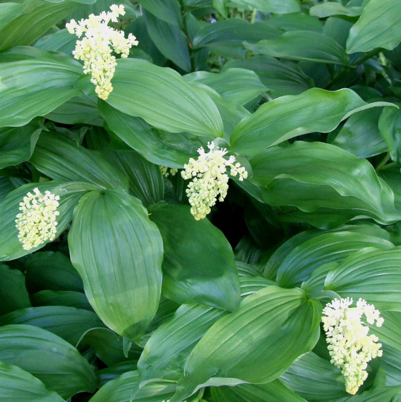Смилацина растет у нас в природе. Многолетник похожий на купену, с более ярким цветением и такой же надежный и терпеливый. Из густого ковра корневищ вырастают дугообразные стебли высотой от 30 до 90 см с двойными рядами эллиптических листьев. Ранней весной стебли заканчиваются крупными, ароматными, белыми метелками. Листья сохраняют декоративность весь сезон.