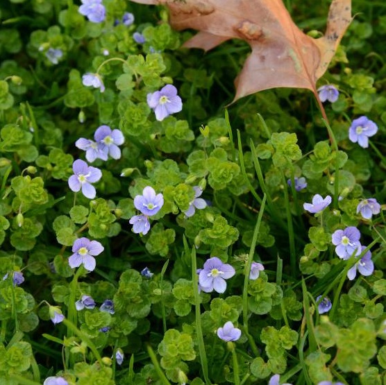 Хороший выбор для создания альтернативного газона, задернения приствольных кругов. Способна в кратчайшие сроки затянуть большие пространства, где обычная трава растет плохо. Цветет в мае нежно-голубыми цветками.