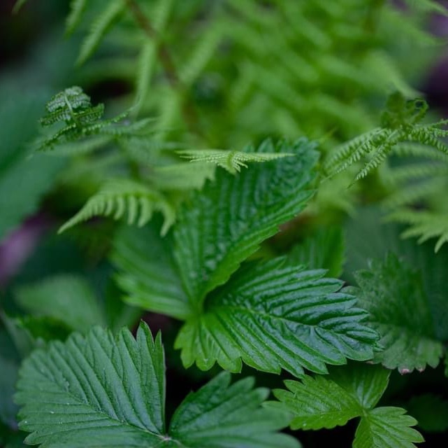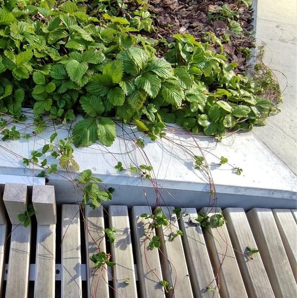 Земляника лесная распространяется ползучими побегами–усами, образуя ковры. Листья тройчатые, овальные, зубчатые, ярко–зелёные. Прямые цветоносы разветвляются на конце. Красные поникающие ягоды съедобны.